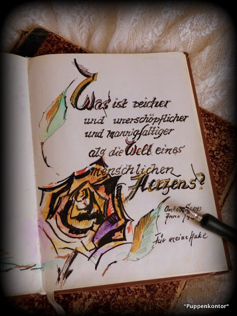 Dabei wird auch vor meinem Puppenkontor nicht halt gemacht und so fiel mir eben bei solch einer Räumungsaktion mein altes Poesiealbum in die Hände.